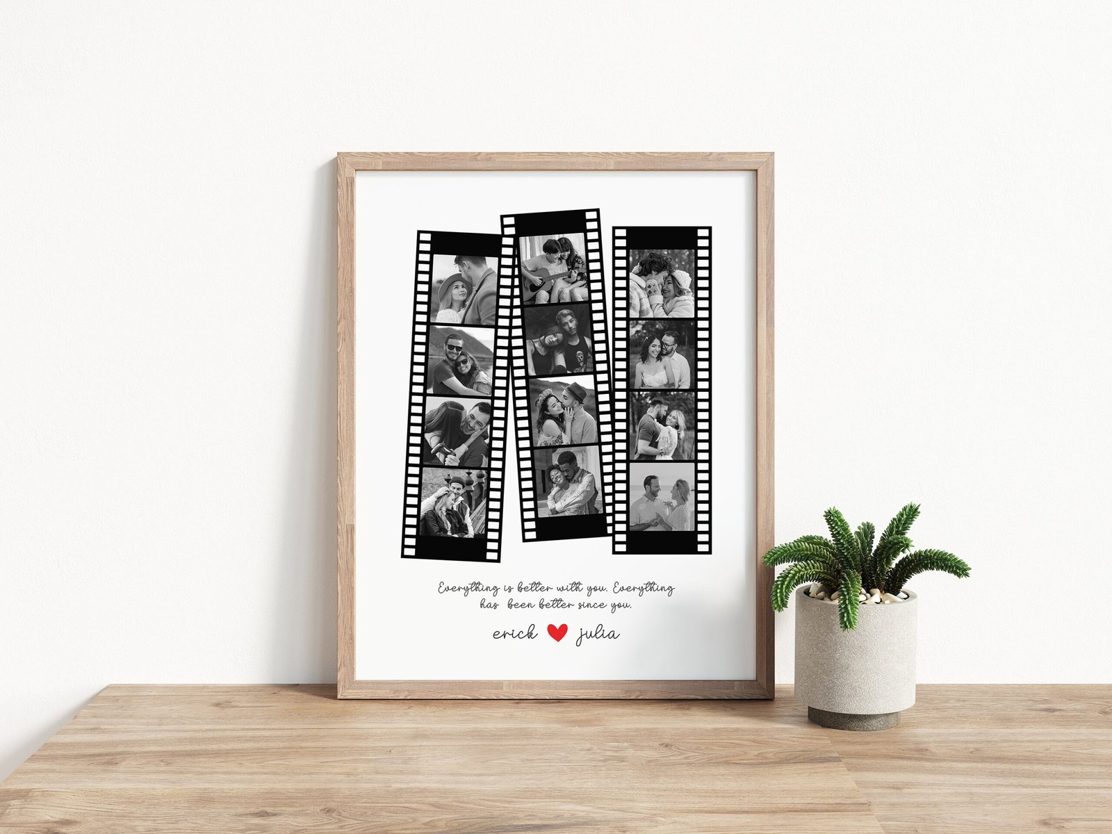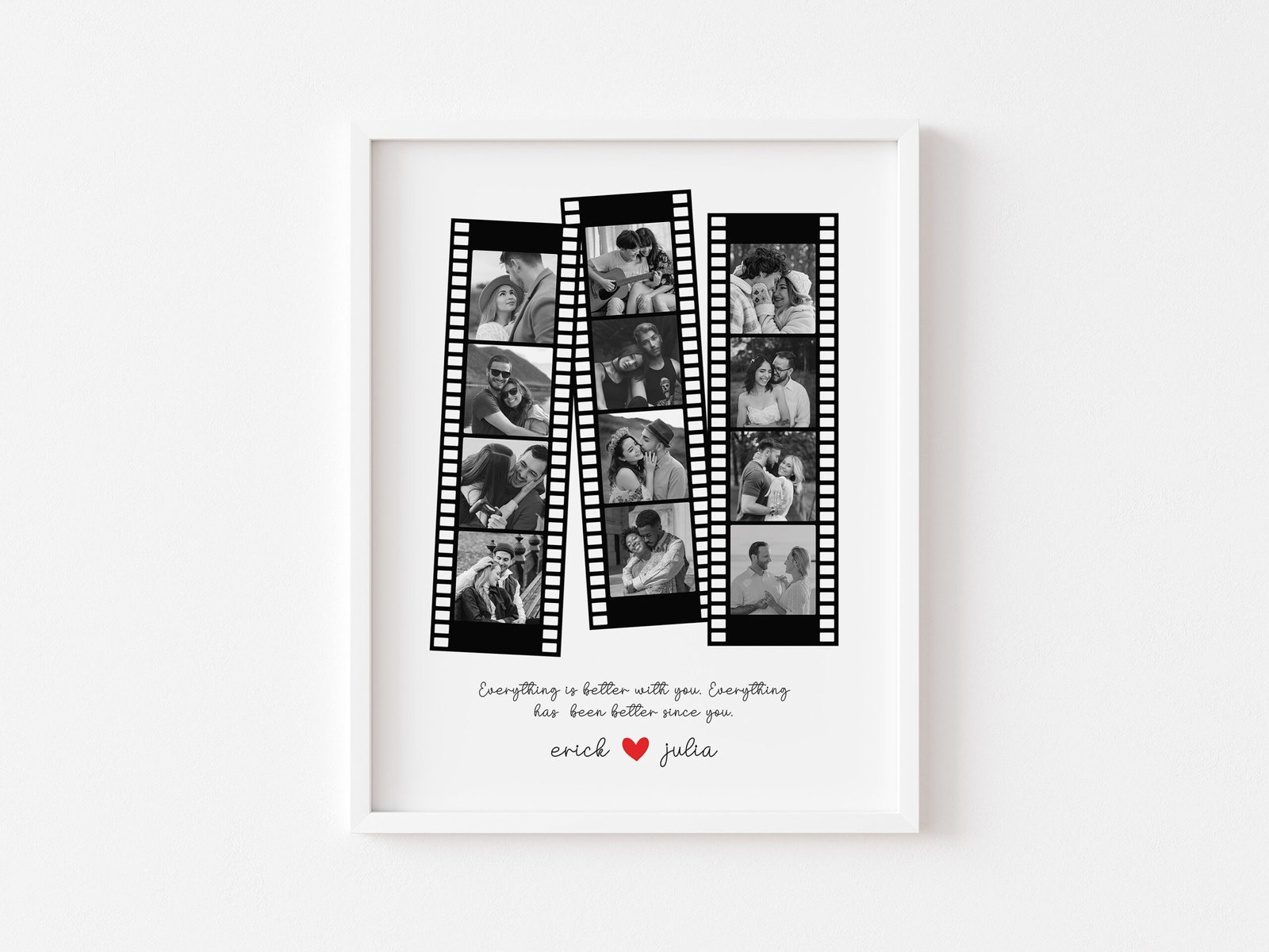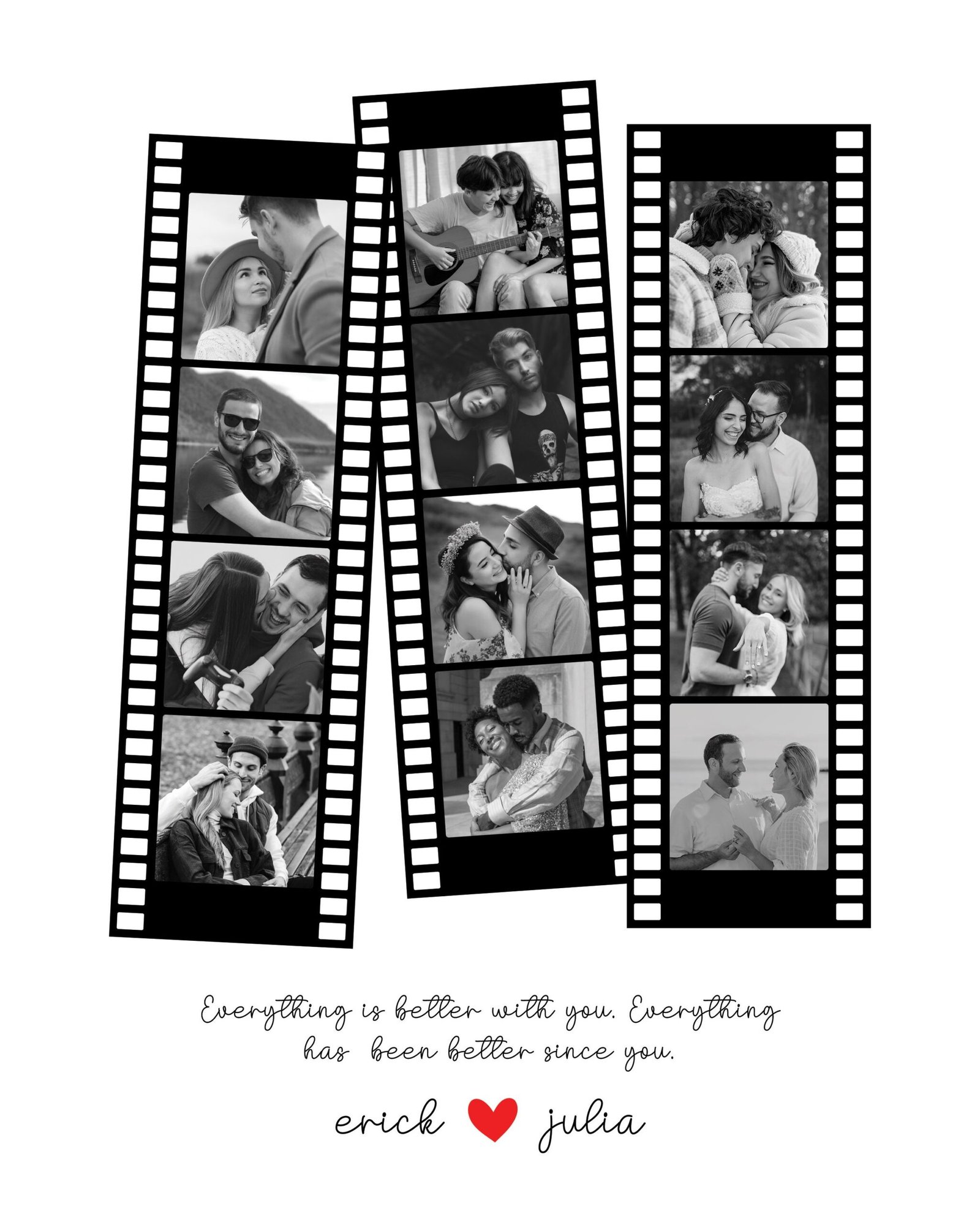 Mark your anniversary with a personalized and sentimental touch by gifting your boyfriend, husband, or girlfriend a Custom Retro Camera Roll Portrait. Transform your shared memories into a nostalgic work of art with this number one collage.