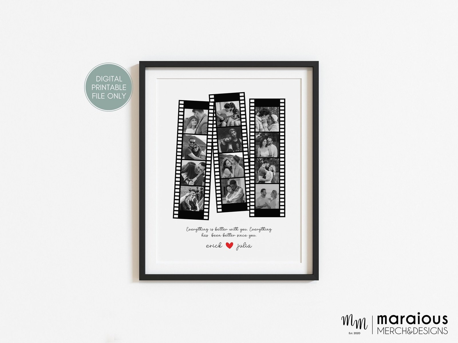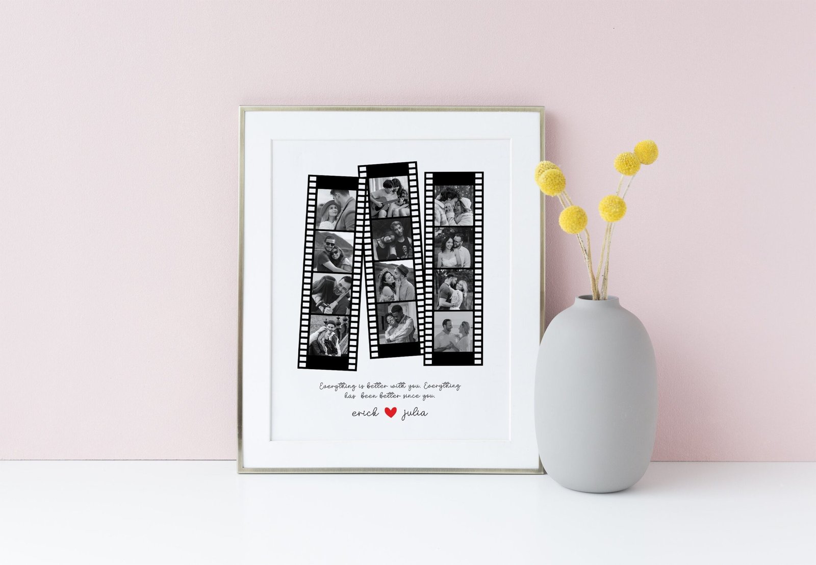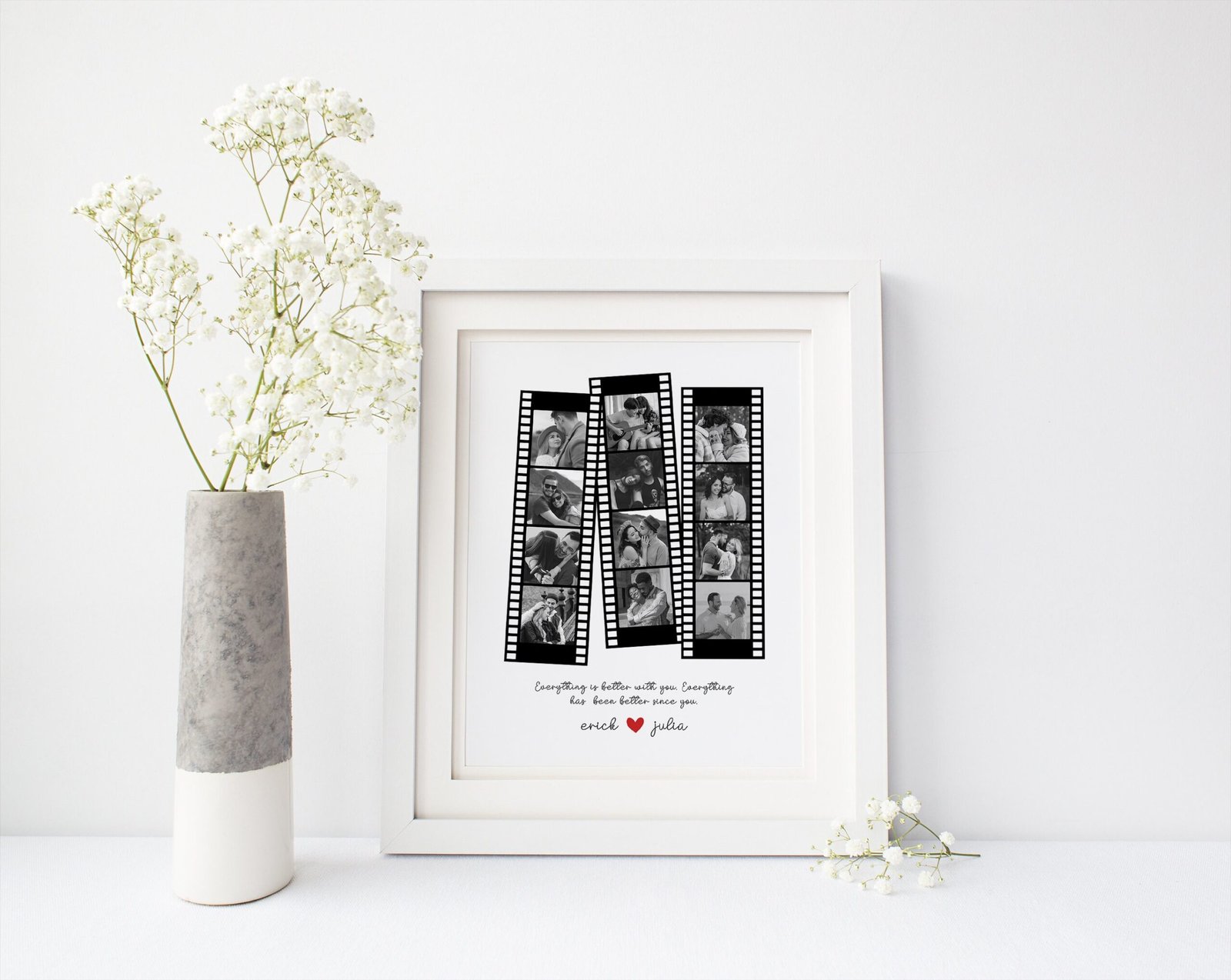 Mark your anniversary with a personalized and sentimental touch by gifting your boyfriend, husband, or girlfriend a Custom Retro Camera Roll Portrait. Transform your shared memories into a nostalgic work of art with this number one collage.